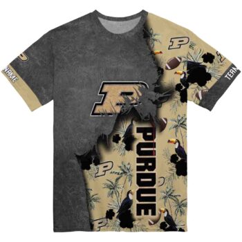 Are you ready to turn heads with this Customized Purdue Boilermakers Tropical Scene Black T-Shirt? Yeah! You can show your team spirit excitingly and cheerfully with this NCAA T-shirt. The front logo proudly indicates your support for the team, and the back logo, which is bigger and made very well to make a statement, makes you feel even more passionate. This shirt is made to stand out and is both stylish and comfortable. For sure, it’s the best way to show how much you love the game!