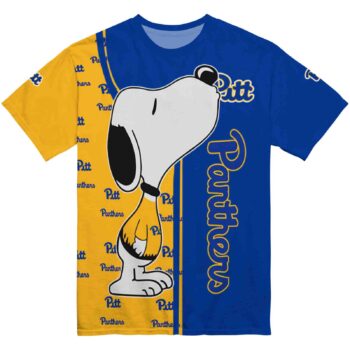 Are you ready to turn heads with this Pittsburgh Panthers Snoopy Graphic Royal Blue T-Shirt? Yeah! You can show your team spirit excitingly and cheerfully with this NCAA T-shirt. The front logo proudly indicates your support for the team, and the back logo, which is bigger and made very well to make a statement, makes you feel even more passionate. This shirt is made to stand out and is both stylish and comfortable. For sure, it’s the best way to show how much you love the game!