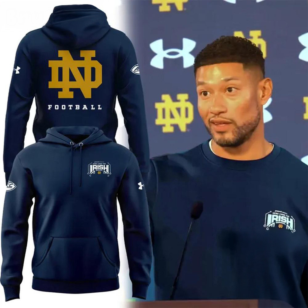 2025 Here Come The Irish Notre Dame Football Hoodie Fighting Irish Merch Best Gift For Football Fans