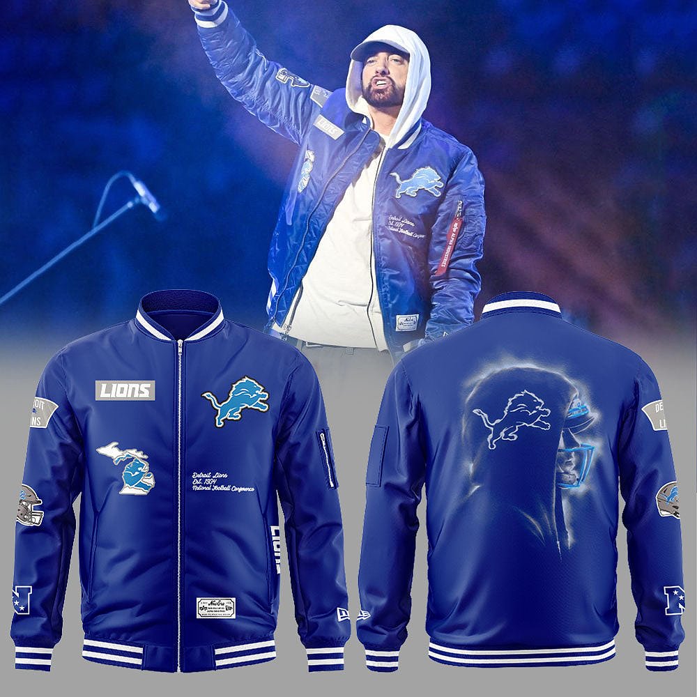 Alpha Industries Detroit Lions Eminem Zip Bomber Jacket NFL Football Hip Hop Best Gift For Music Fans.