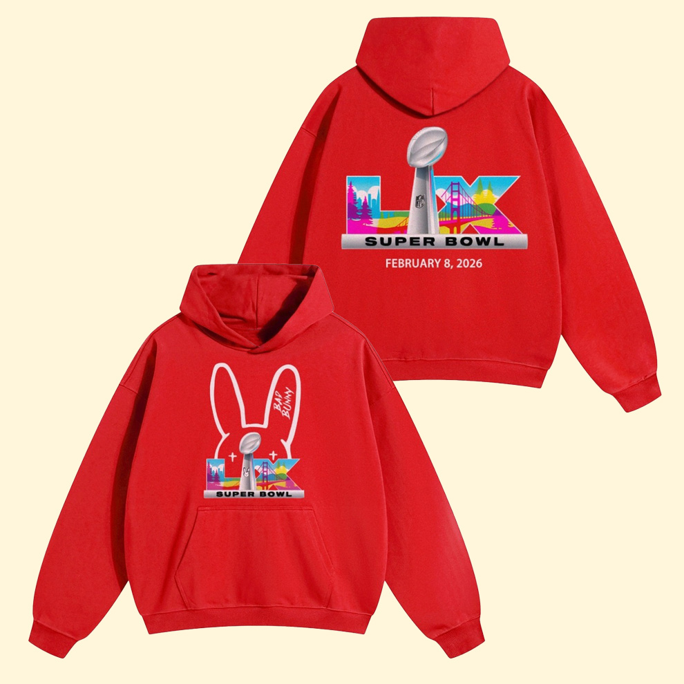 Bad Bunny 2026 Super Bowl LX Pure Unisex Red Hoodie Football Merch Best Gift For Football Fans