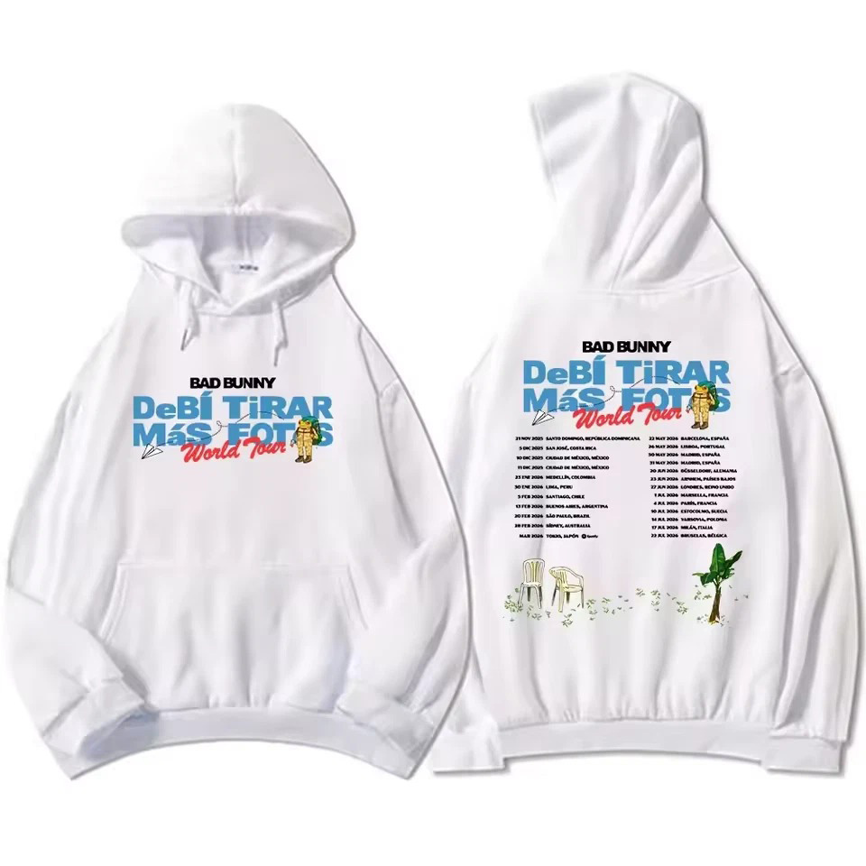 Bad Bunny Debi Tirar Mas Fotos Tour White Hoodie Music Merch Best Gift For Music Fans