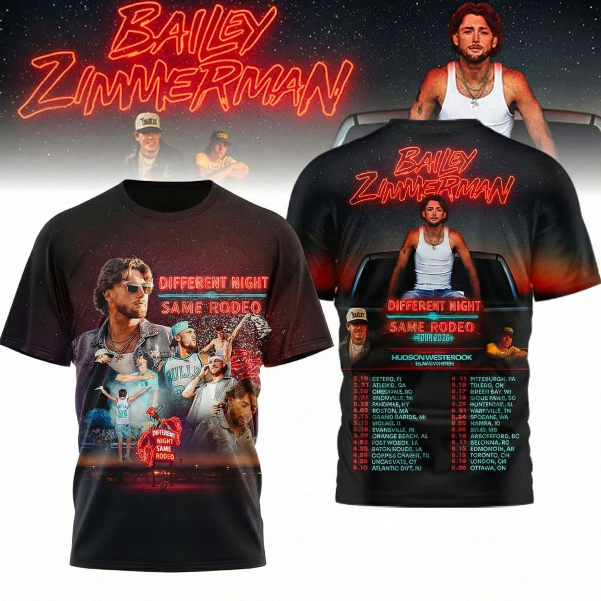 Bailey Zimmerman Different Night Same Rodeo Tour T-Shirt Bailey Zimmerman Merch Country Music Fans Gifts