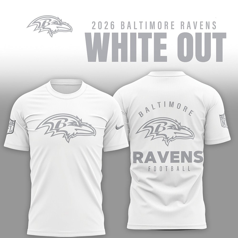 Baltimore Ravens 2026 Winter White Out T-Shirt NFL Football Apparel Best Gift For Football Fans