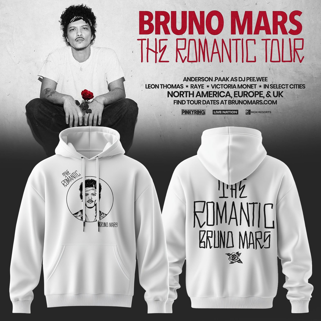 Bruno Mars The Romantic Tour White Hoodie Best Gift For Music Fans