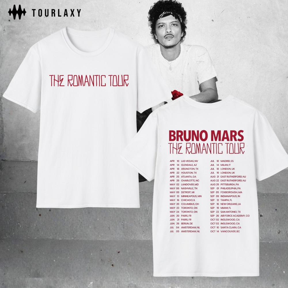 Bruno Mars Tour 2026 Romantic Tour T-Shirt Official Merch Best Gift For Music Fans