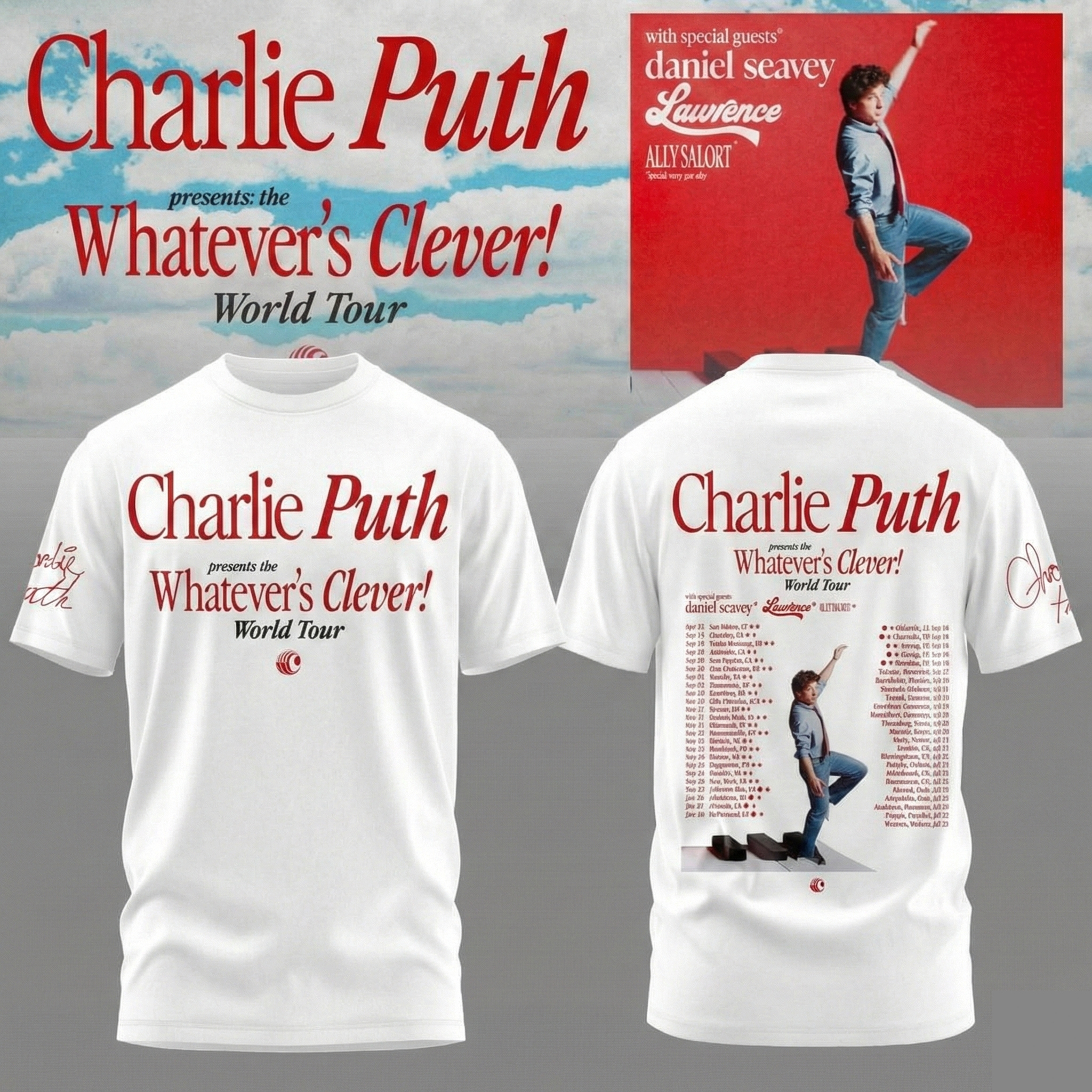 Charlie Puth Merch Whatever’s Clever World Tour T-Shirt Charlie Puth Tour Merch Fans Gifts
