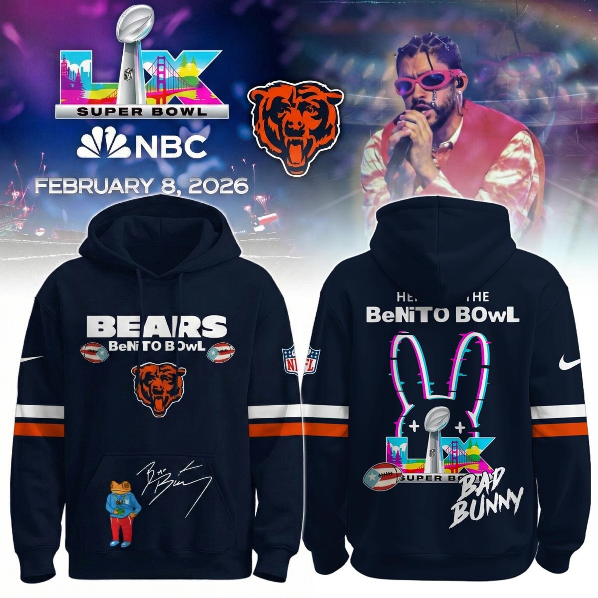 Chicago Bears x Bad Bunny Benito Bowl Super Bowl Hoodie Bears Merch Unique Gift For NFL Fans