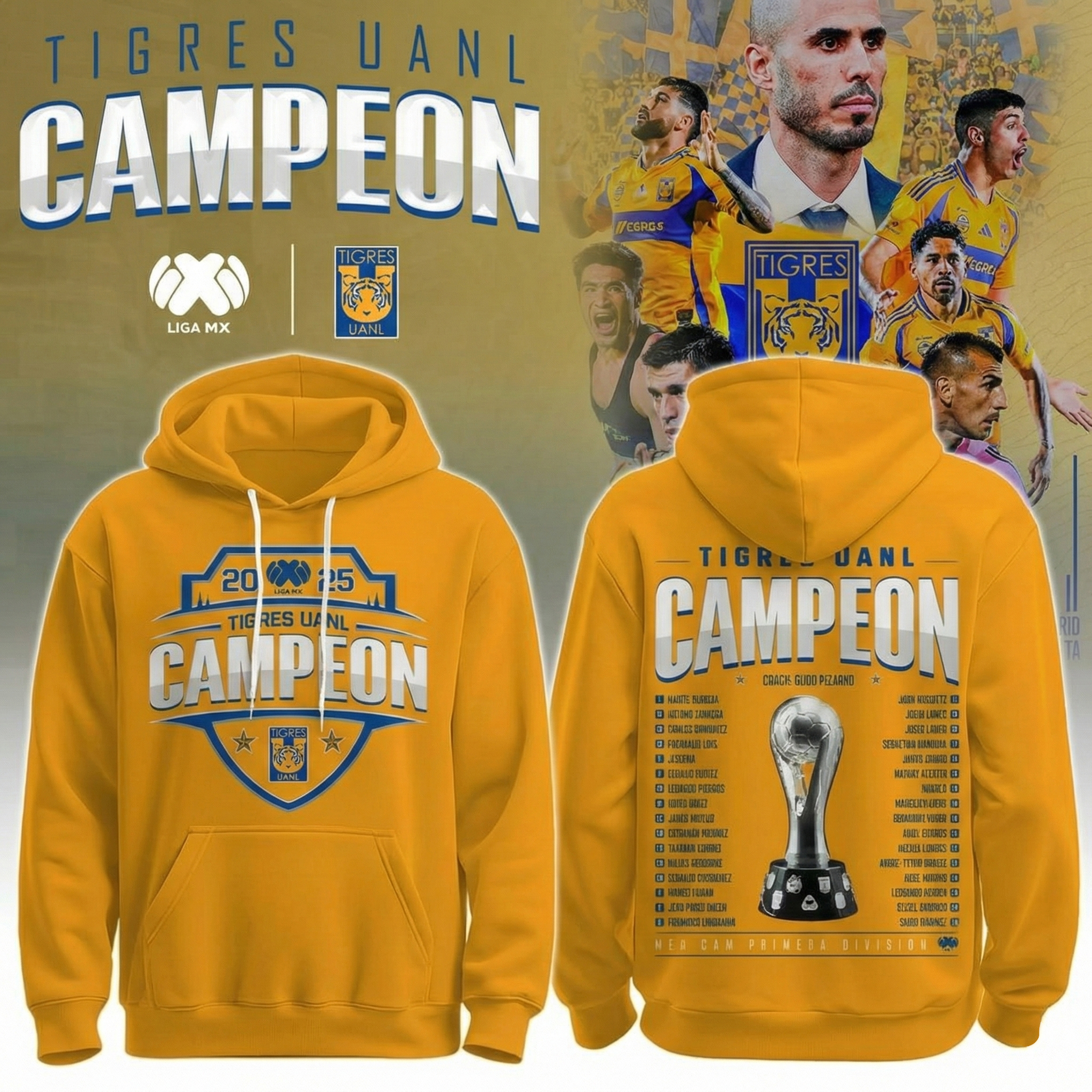 Club Tigres UANL Champions Hoodie Club Tigres UANL Merchandise Best Gift For Soccer Fans.