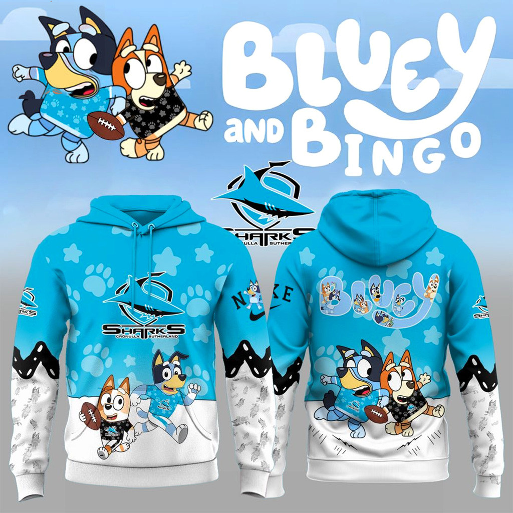 Cronulla Sutherland Sharks x Bluey And Bingo Hoodie Sharks Merch Best Gift For Rugby Fans