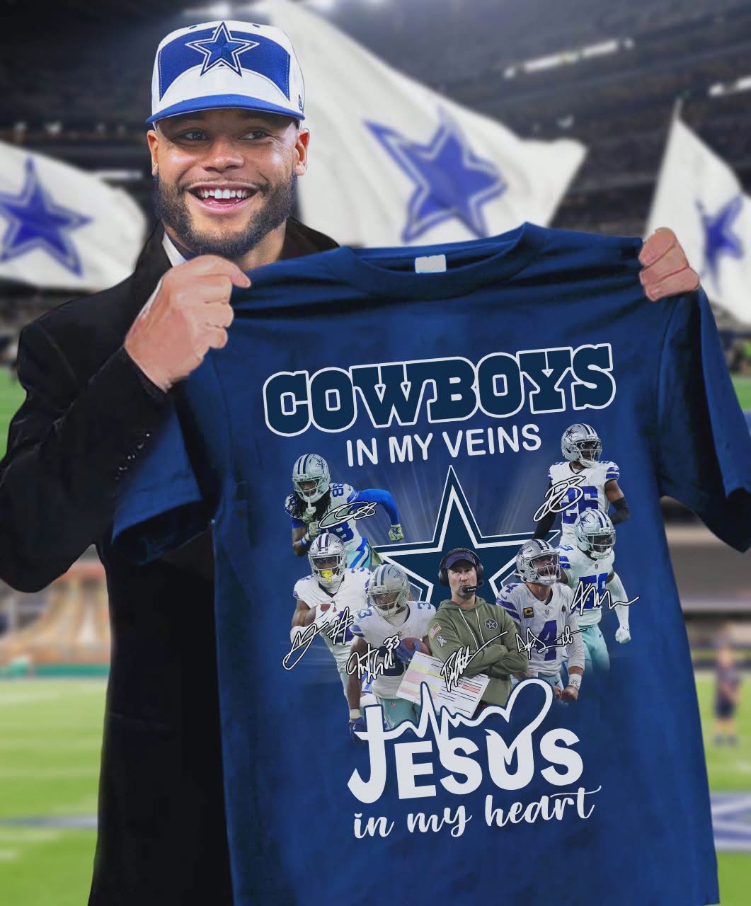 Dallas Cowboys Football Faith Shirt Cowboy In My Veins Jesus In My Heart Best Gift For Football Fans
