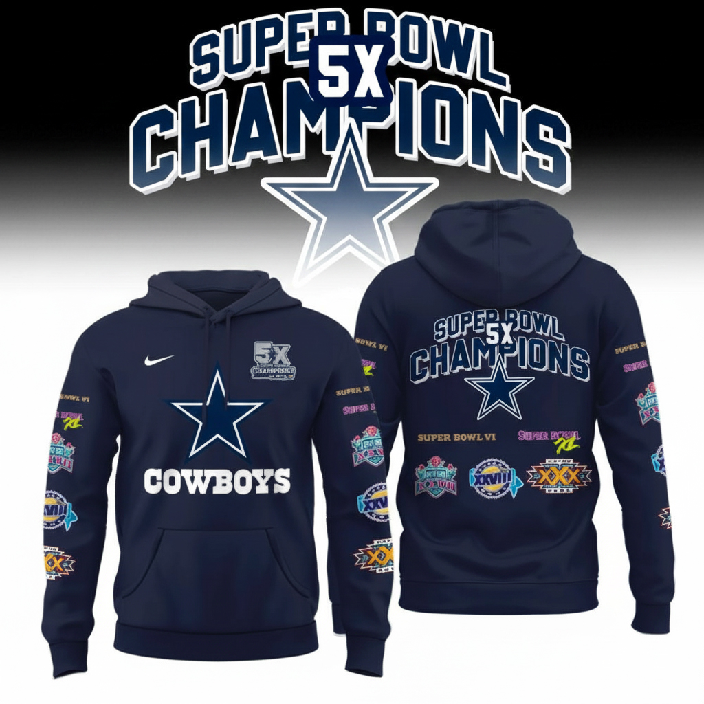 Dallas Cowboys Super Bowl Champions Patch Throwback Hoodie Cowboys Merch Gift For NFL Fans