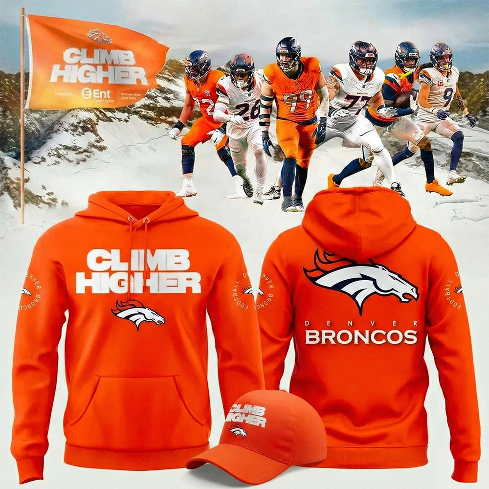 Denver Broncos Climb Higher Hoodie Broncos Merchandise Unique Gift For NFL Fans.