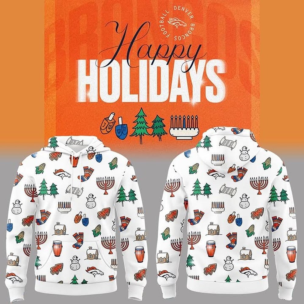 Denver Broncos Happy Holidays 2025 Christmas Hoodie NFL Football Holiday Apparel Best Gift For Football Fans.