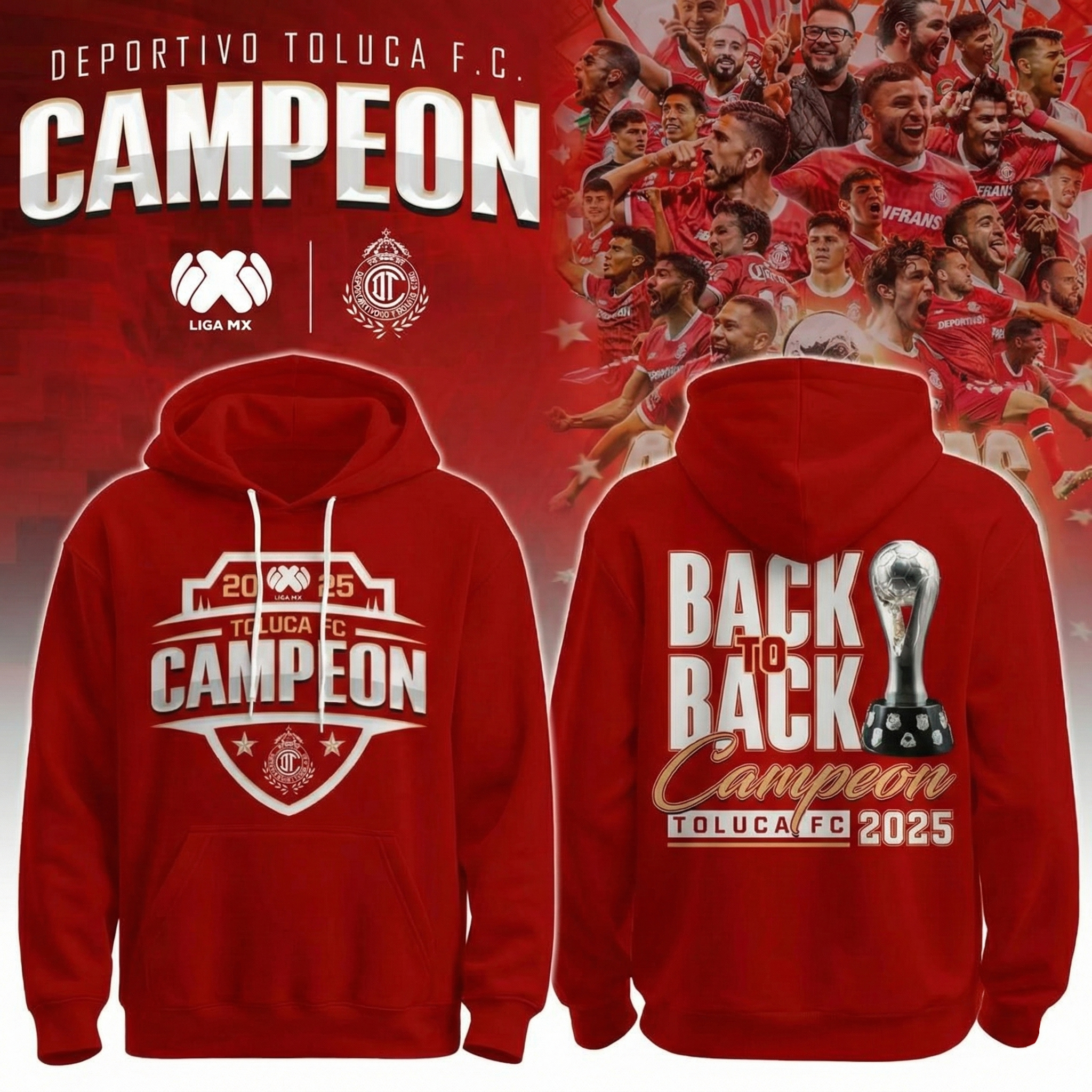 Deportivo Toluca FC Back to Back Champions Hoodie Deportivo Toluca FC Merch Gift For Soccer Fans