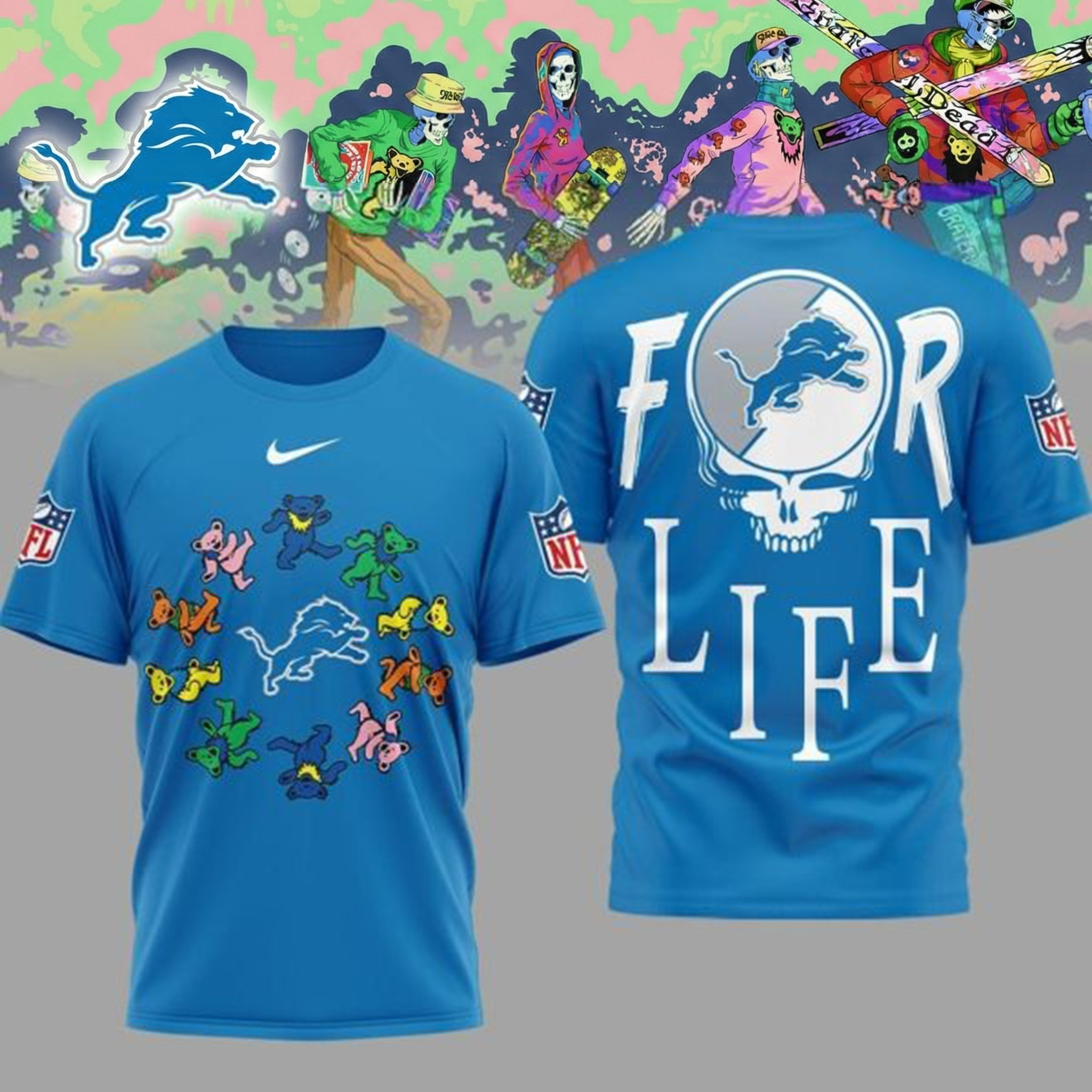 Detroit Lions Grateful Dead Forever 2026 T-Shirt Lions Merch Unique Gift For NFL Music Fans.