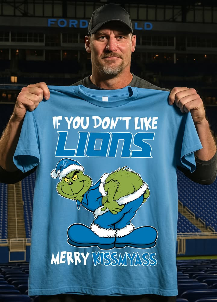 Detroit Lions Grinch Merry Kiss My Ass Christmas T-Shirt Best Gift For Football Fans.