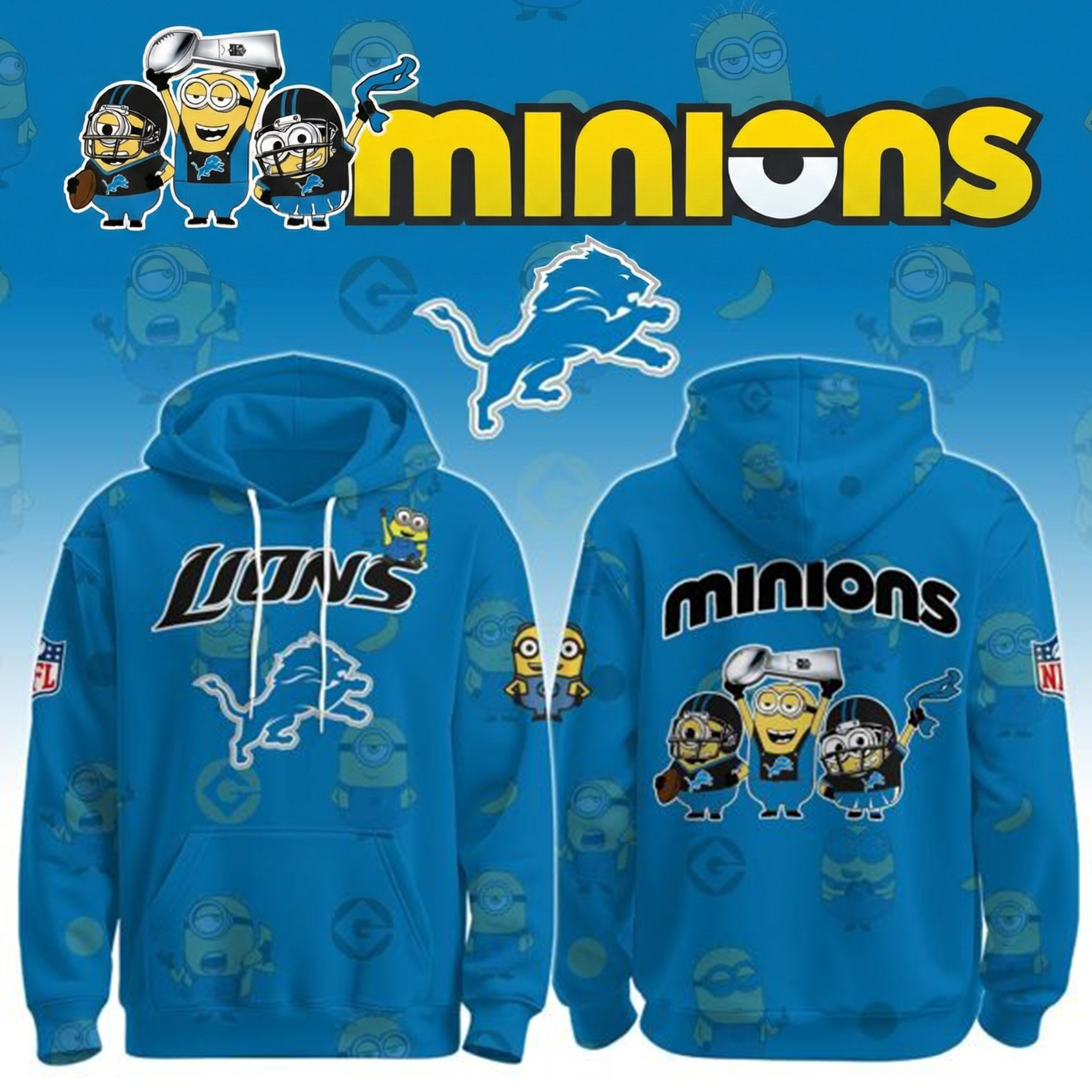 Detroit Lions x Minions Celebrate NFL Holiday Game Hoodie Lions Merch Best Gift For NFL Fans