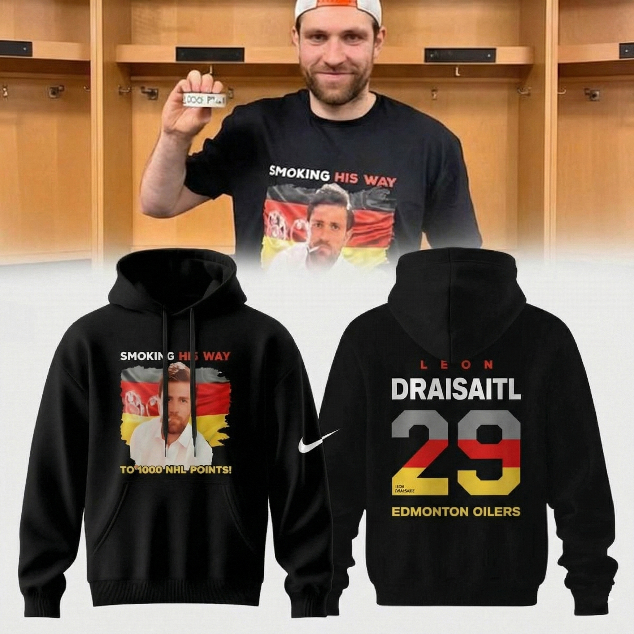 Edmonton Oilers Leon Draisaitl 1000 NHL Points Smoking His Way Hoodie Oilers Apparel Gift For Hockey Lovers