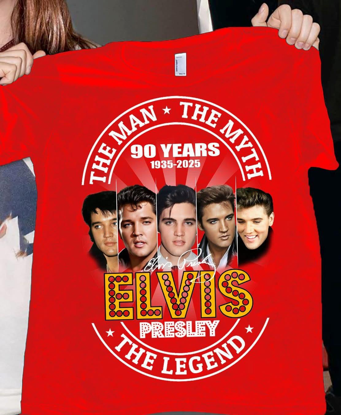 Elvis Presley T-Shirt The Man The Myth The Legend 90 Years 1935 2025 Fan Merch Gifts