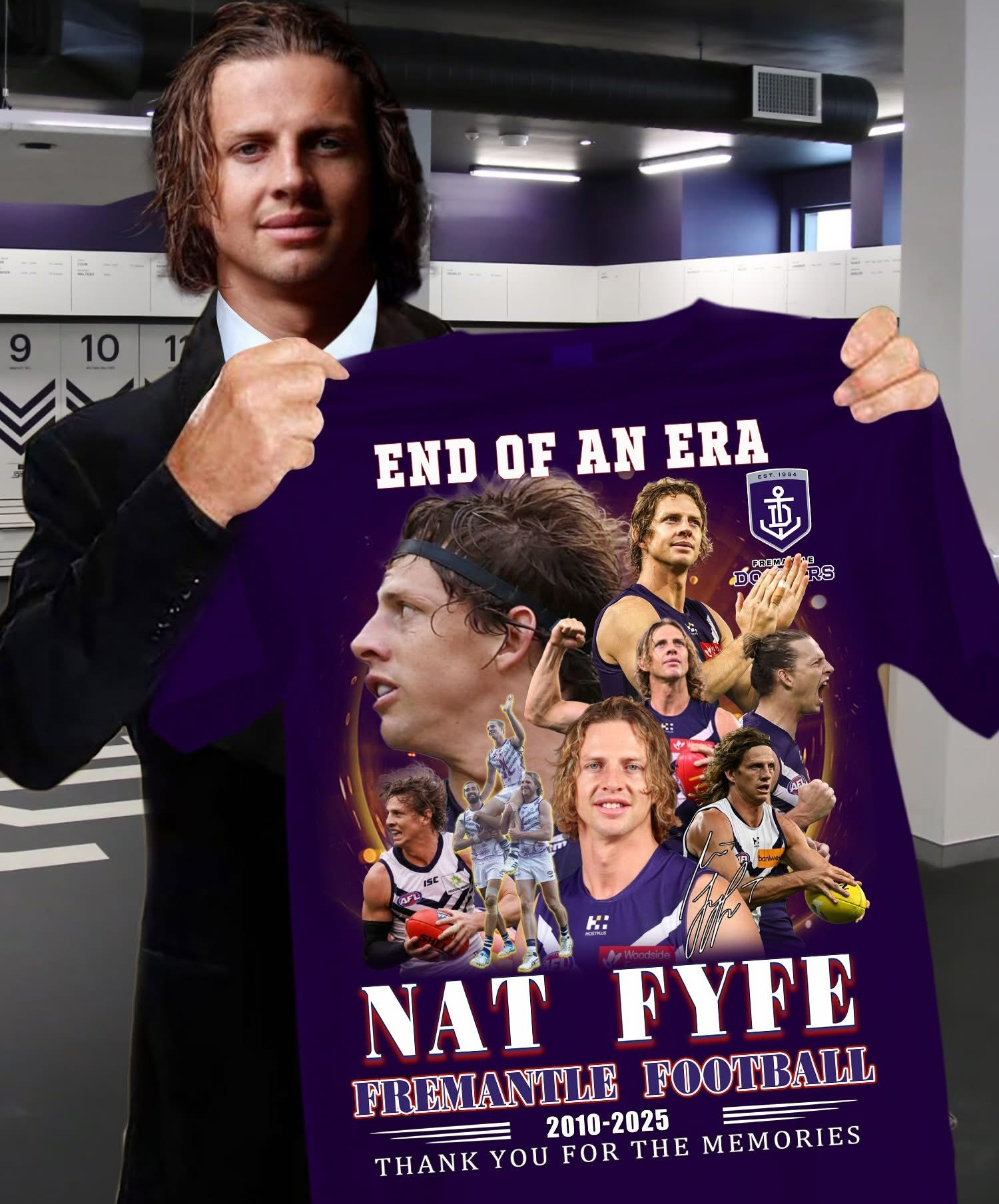 End Of An Era Nat Fyfe Fremantle Football T-Shirt Thank You For The Memories 2015 2025.