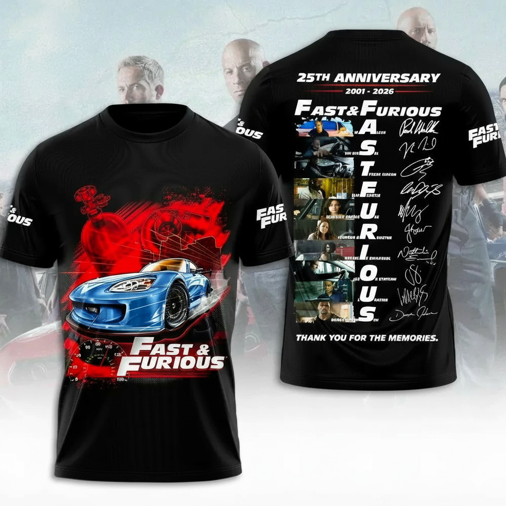 Fast And Furious 25th Anniversary Thank You For The Memories T-Shirt Fast Furious Merch Movie Fans Gifts.