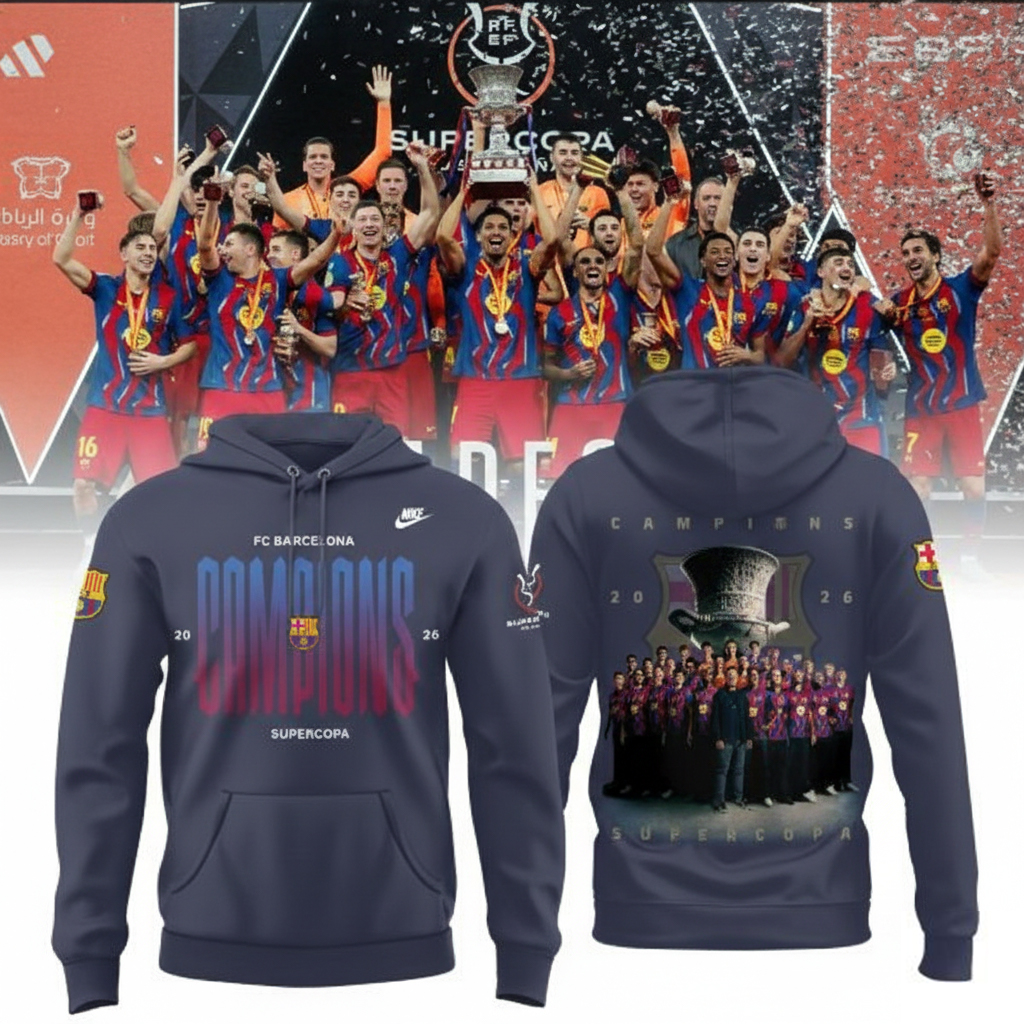 FC Barcelona Campions Supercopa 2026 The King Hoodie Barcelona Merch Cool Gift For Soccer Fans.