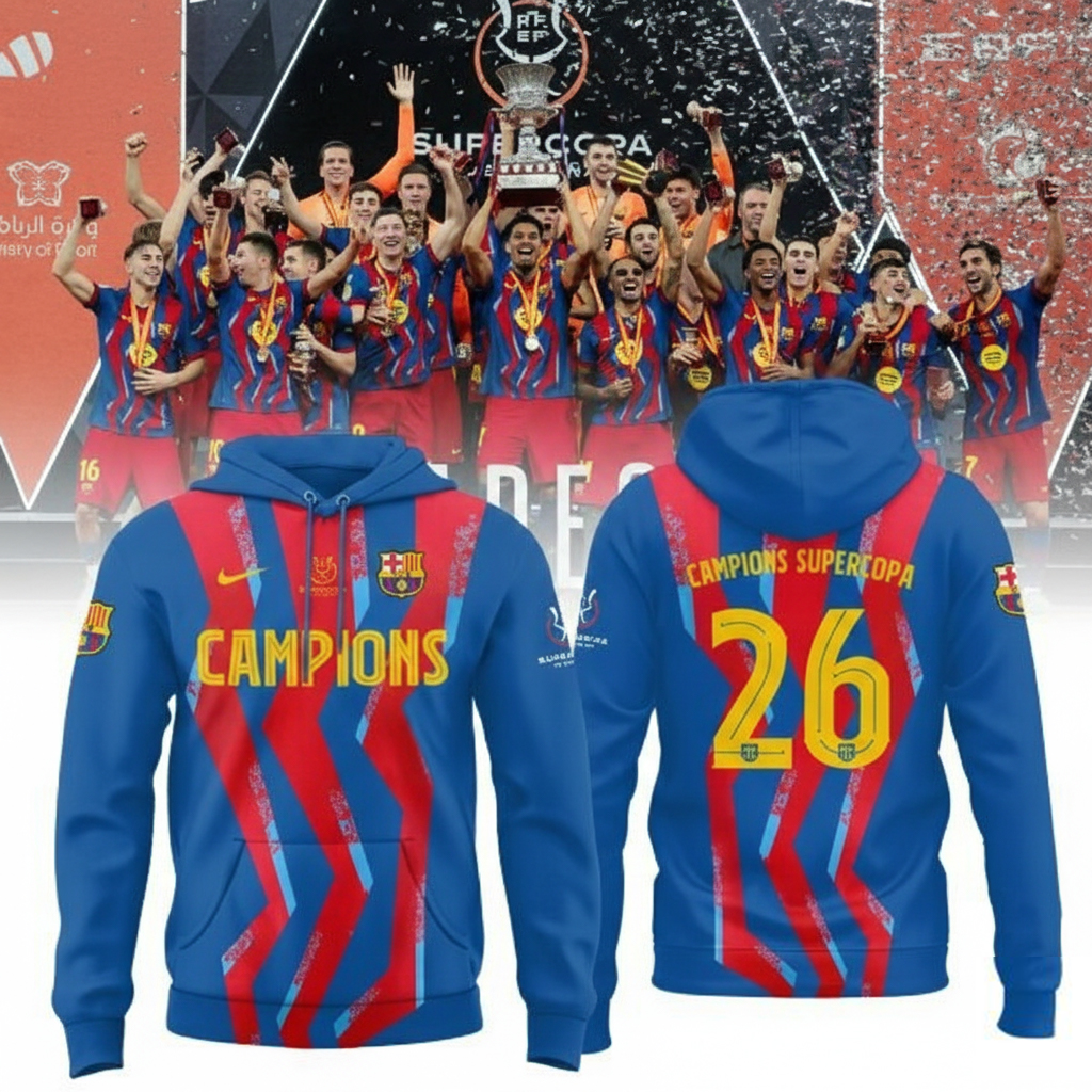 FC Barcelona Supercopa Winners Supercup 2026 Campions Hoodie Barcelona Merchandise Best Gift For Fans