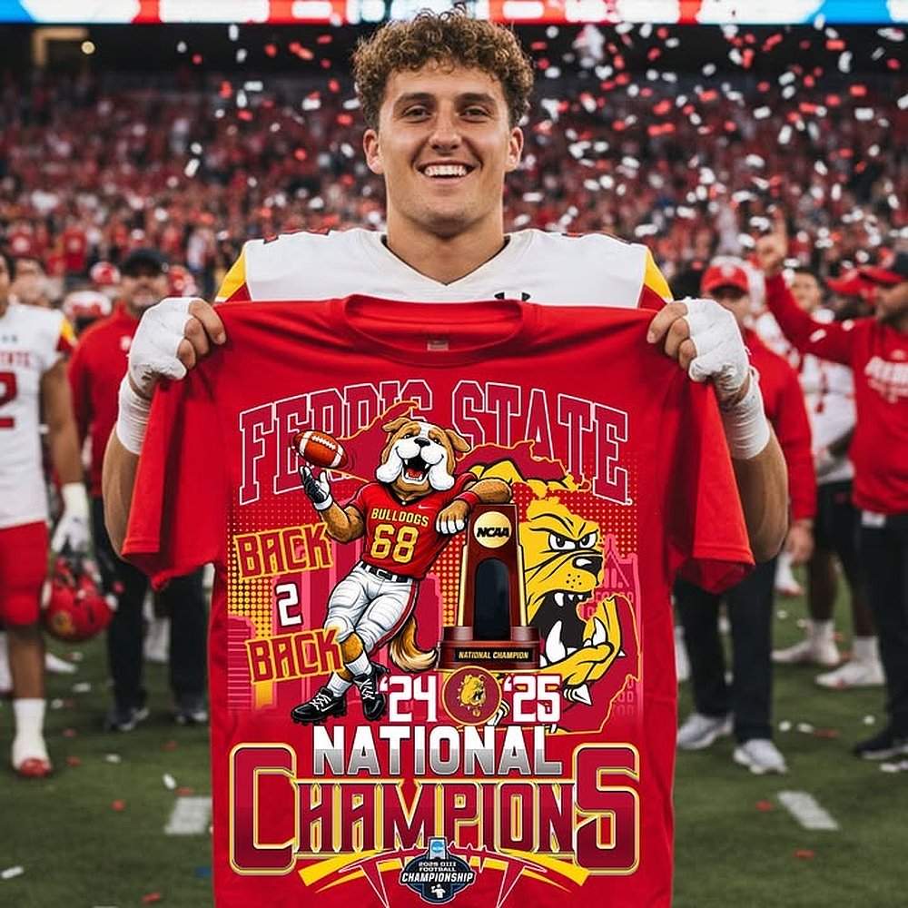 Ferris State Bulldogs Back To Back National Champions 2024 2025 Mascot Trophy T-Shirt Best Gift For Fans