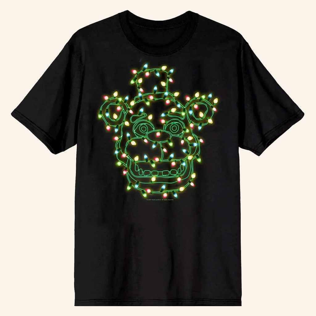 Five Nights At Freddy’s Merch Five Nights At Freddy’s Christmas Lights Freddy T-Shirt Xmas Gifts