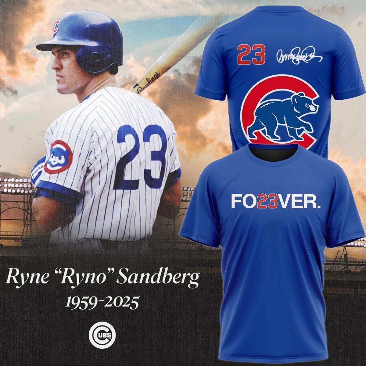 Fo23Ver T-Shirt Rest In Peace Ryne Sandberg Chicago Legend Chicago Cubs Merch Memorial.