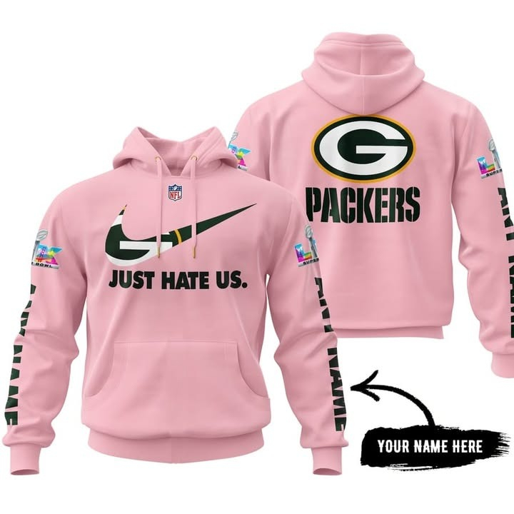 Green Bay Packers Football Just Hate Us Pink Hoodie Packers Merch Best Gift For Football Fans