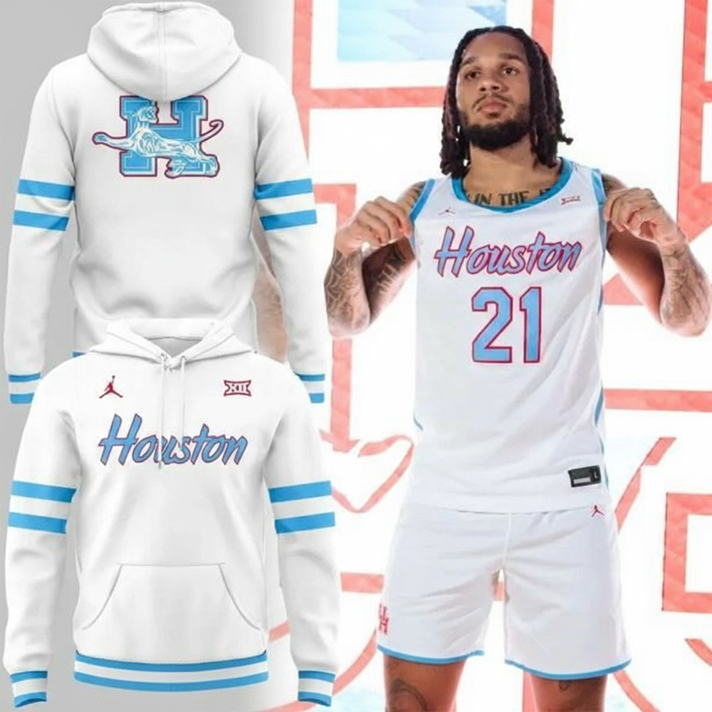 Houston Basketball Icy Whites Uniform Hoodie Cougars Merchandise Unique Gift For Basketball Fans.