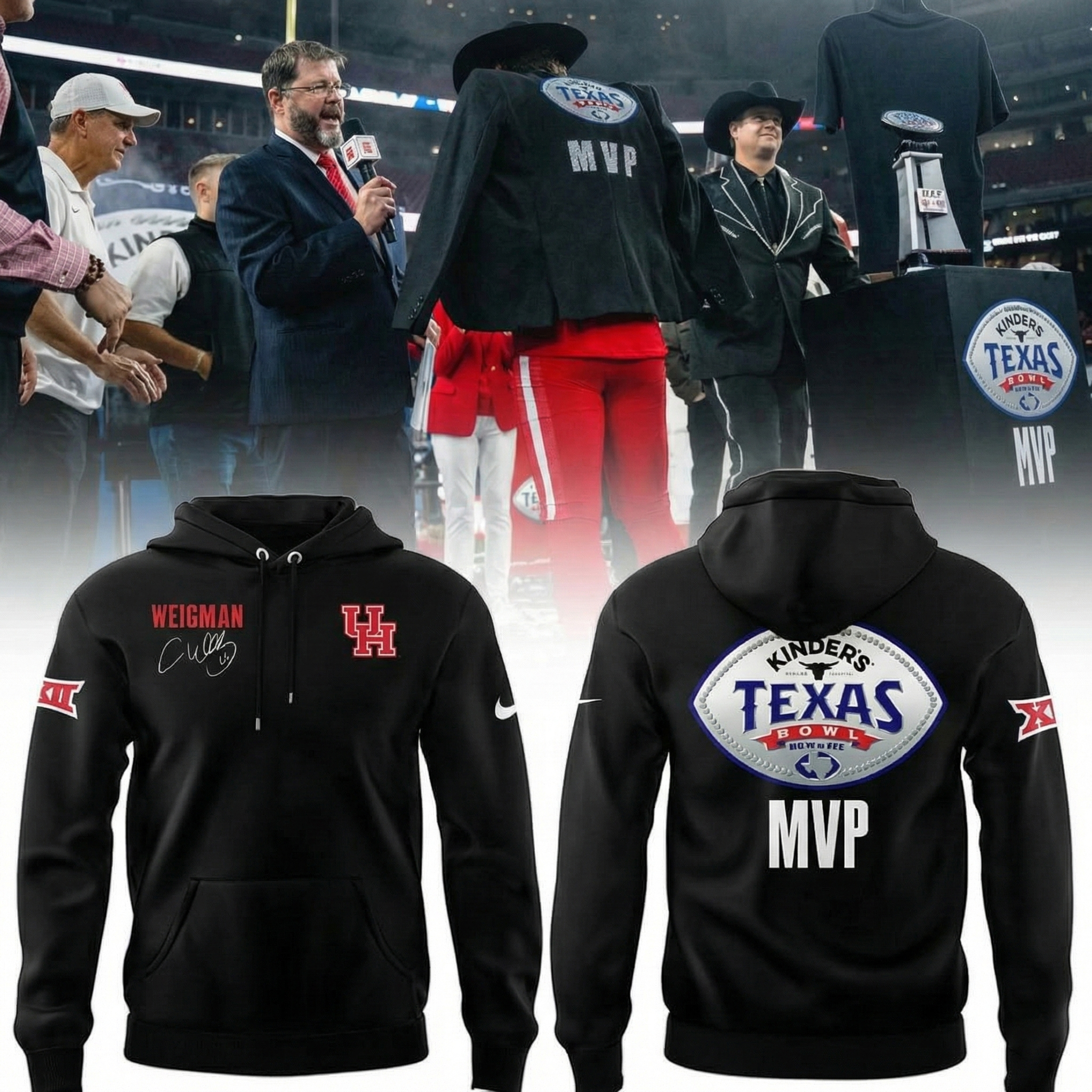 Houston Cougars Conner Weigman MVP Kinders Texas Bowl Hoodie Cougars Merch Football Fans Gifts.