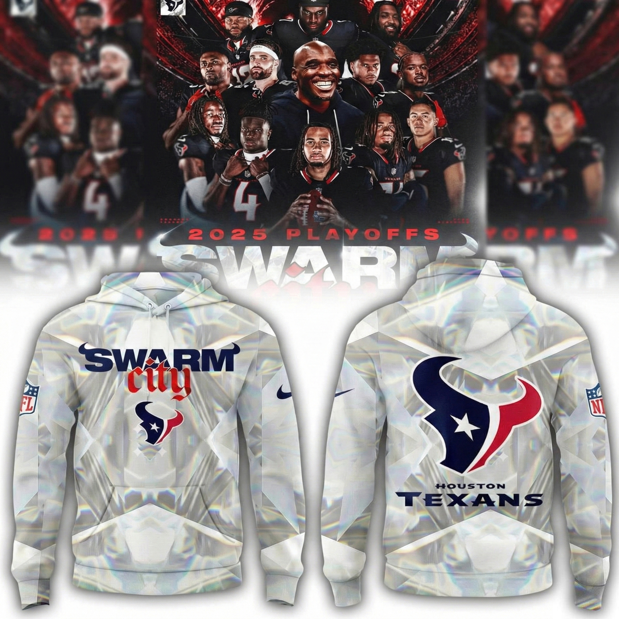 Houston Texans Time To Swarm 2025 Playoffs Hoodie Texans Merch Unique Gift For NFL Fans.