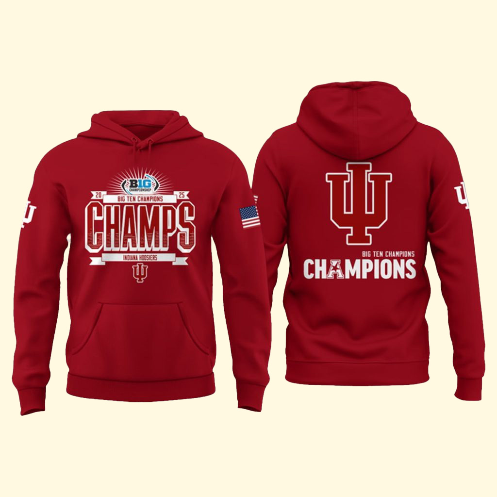 Indiana Hoosiers 2025 Big Ten Football Champions Hoodie College Football NCAA Merch Best Gift For Football Fans