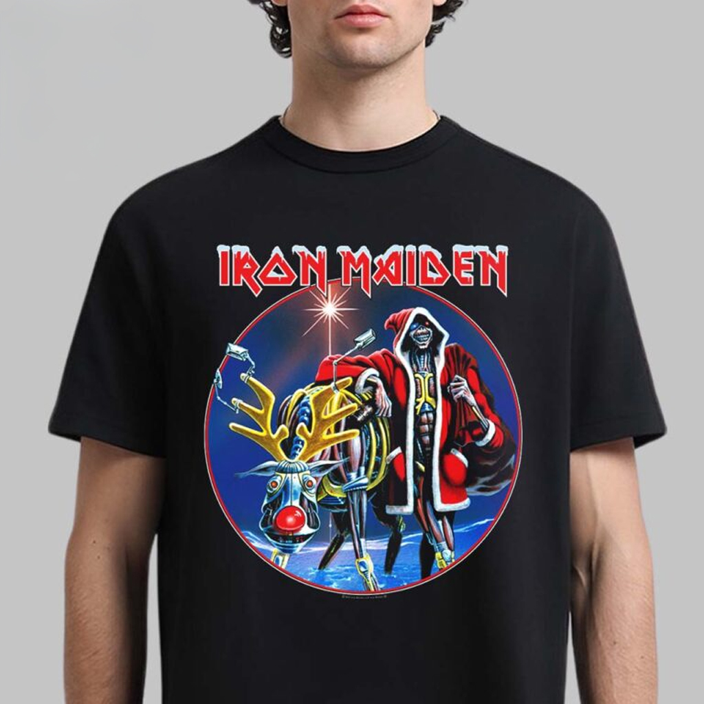 Iron Maiden Xmas Somewhere In Time Santa Eddie Xmas T-Shirt Iron Maiden Merch For Dad .
