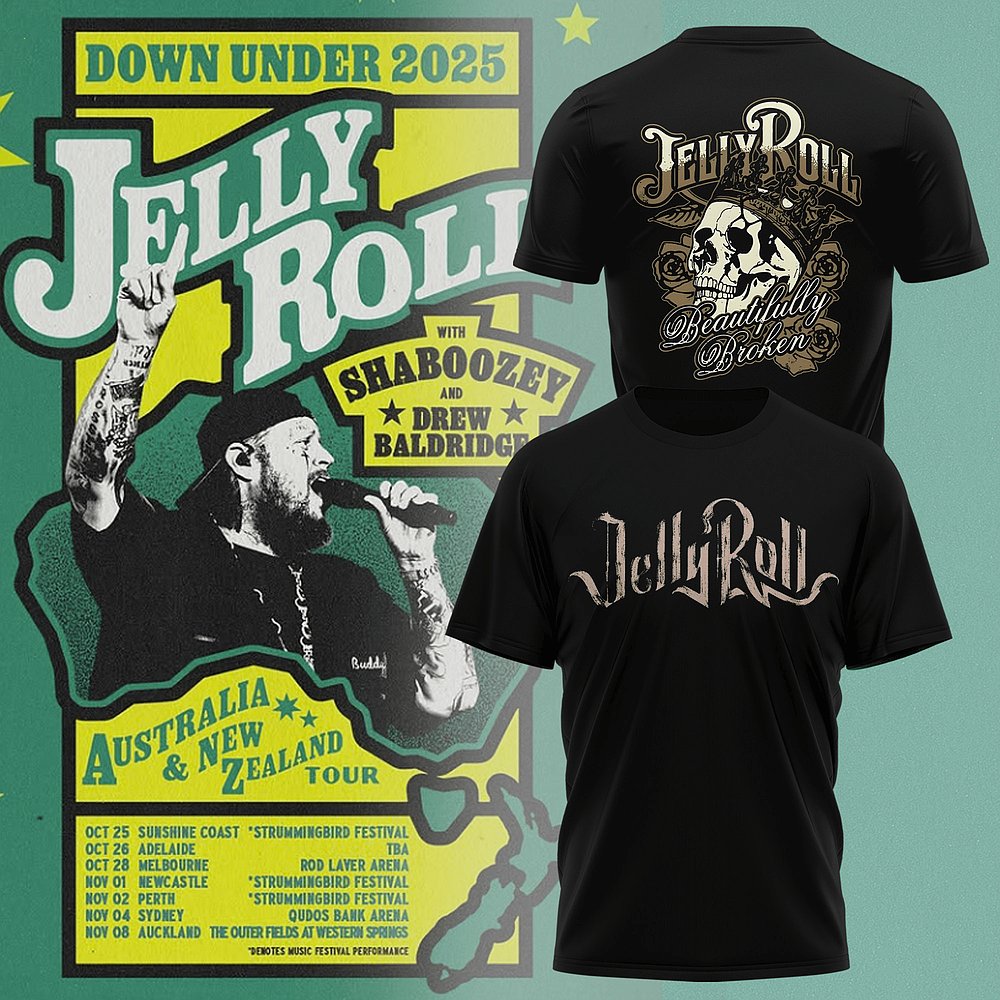 Jelly Roll The Down Under 2025 Beautifully Broken Skull T-Shirt Jelly Roll Merch Gift.