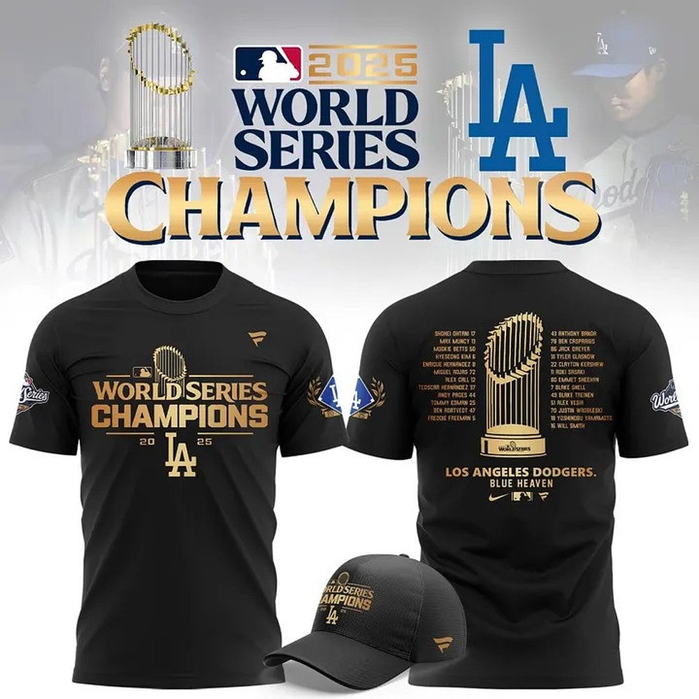 LA Dodgers 2025 World Series Champions Shirt and Hat Set Dodgers Fan Gear