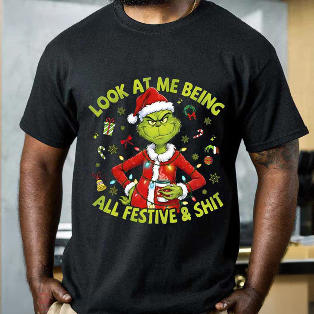 Look At Me Being All Festive And Shit Grinchmas Christmas Shirt For Besties .