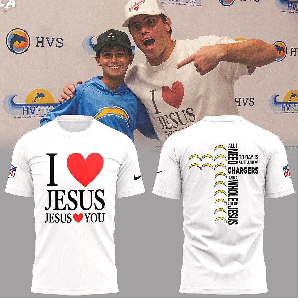Los Angeles Chargers Limited Edition I Love Jesus White T-Shirt NFL Football Faith Apparel Best Gift For Fans.