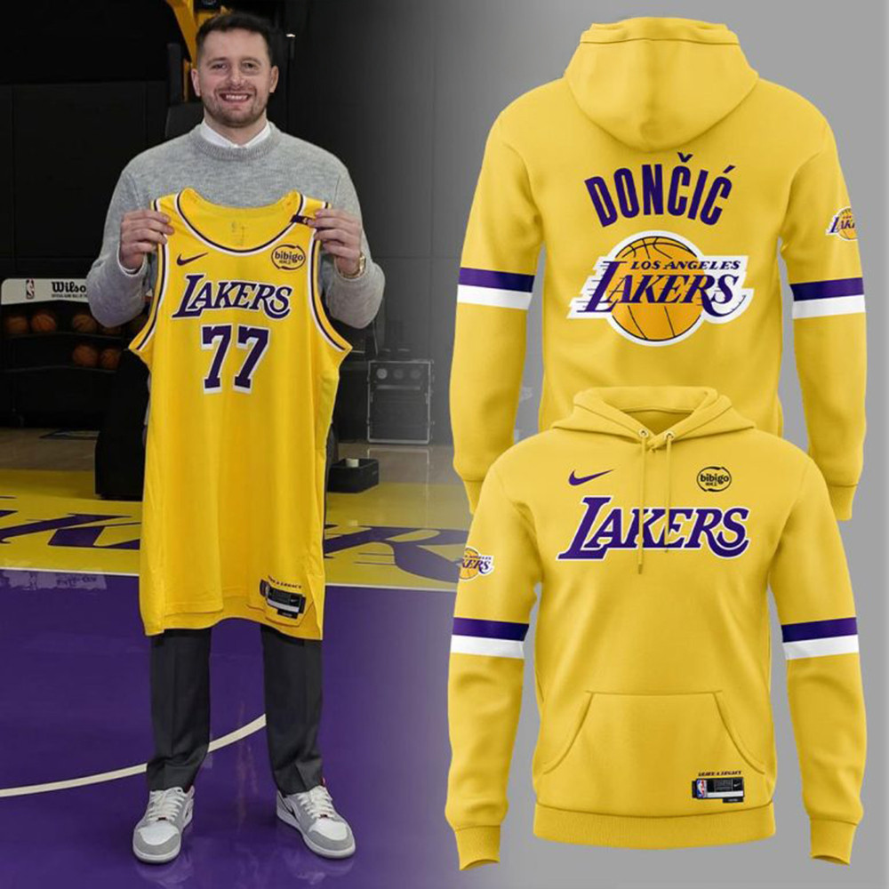Los Angeles Lakers Show Luka Doncic Gold Hoodie Best Gifts For Basketball Fans.
