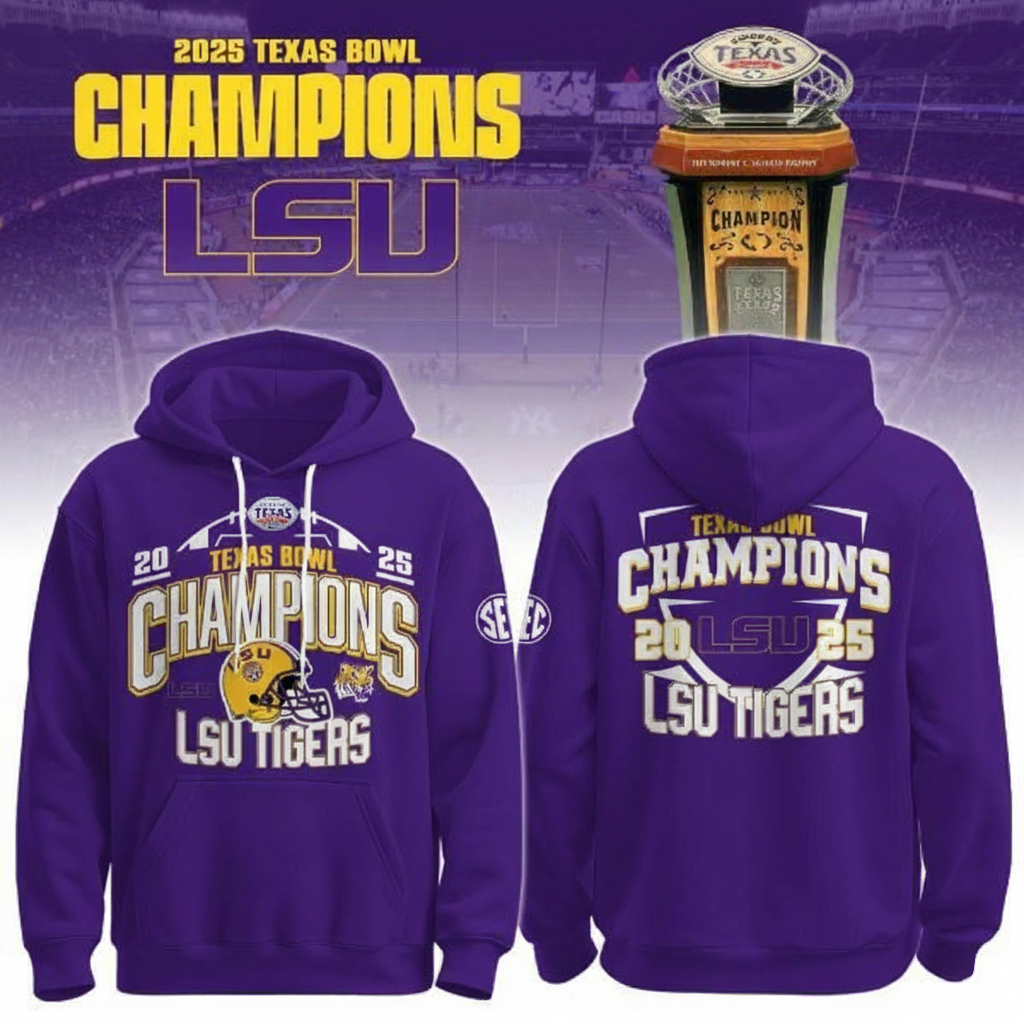 LSU Tigers Football 2025 Texas Bowl Champions Hoodie LSU Tigers Merch Gift For College Football Fans.
