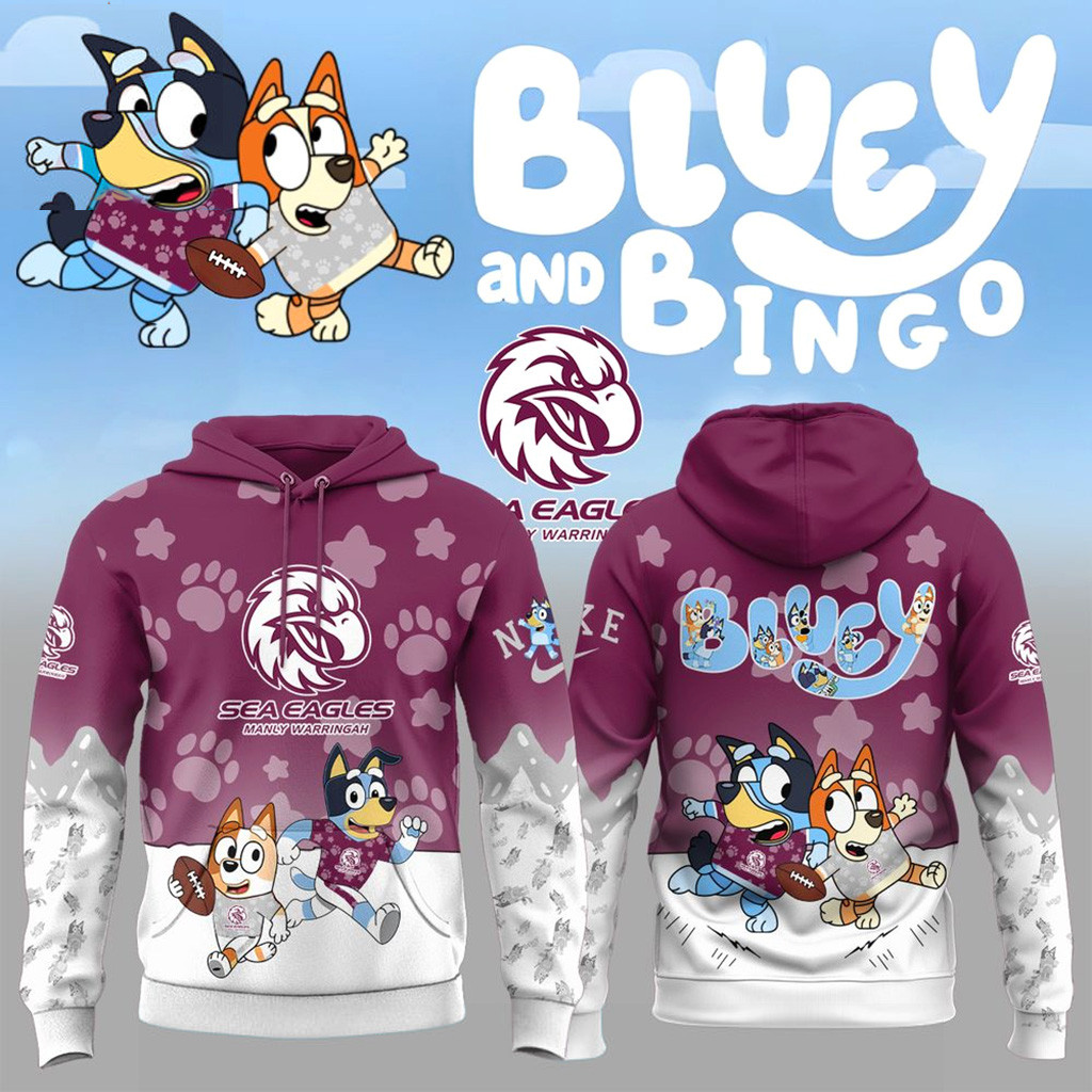 Manly Warringah Sea Eagles x Bluey And Bingo Hoodie Sea Eagles Merch Best Gift For Rugby Fans.