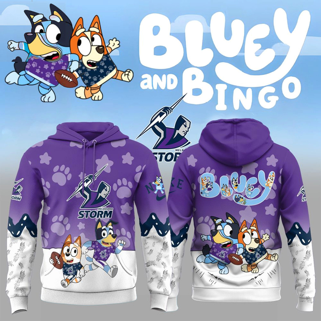 Melbourne Storm x Bluey And Bingo Hoodie Melbourne Storm Merch Best Gift For Rugby Fans.