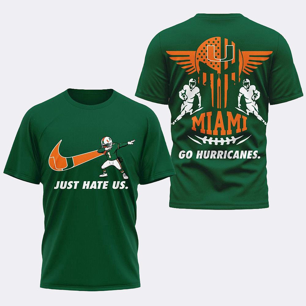 Miami Hurricanes 2025 NCAA Just Hate Us T-Shirt Hurricanes Merch Best Gift For Football Fans