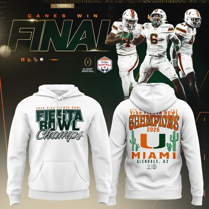 Miami Hurricanes College Football Playoff 2026 Fiesta Bowl Champions Locker Room Hoodie Hurricanes Apparel.