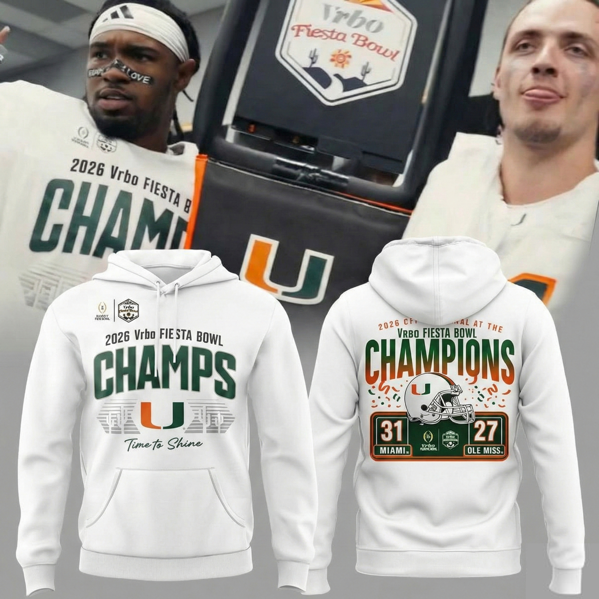 Miami Hurricanes Fiesta Bowl Champions Time To Shine Hoodie Canes Merchandise Cool Gift For Fans