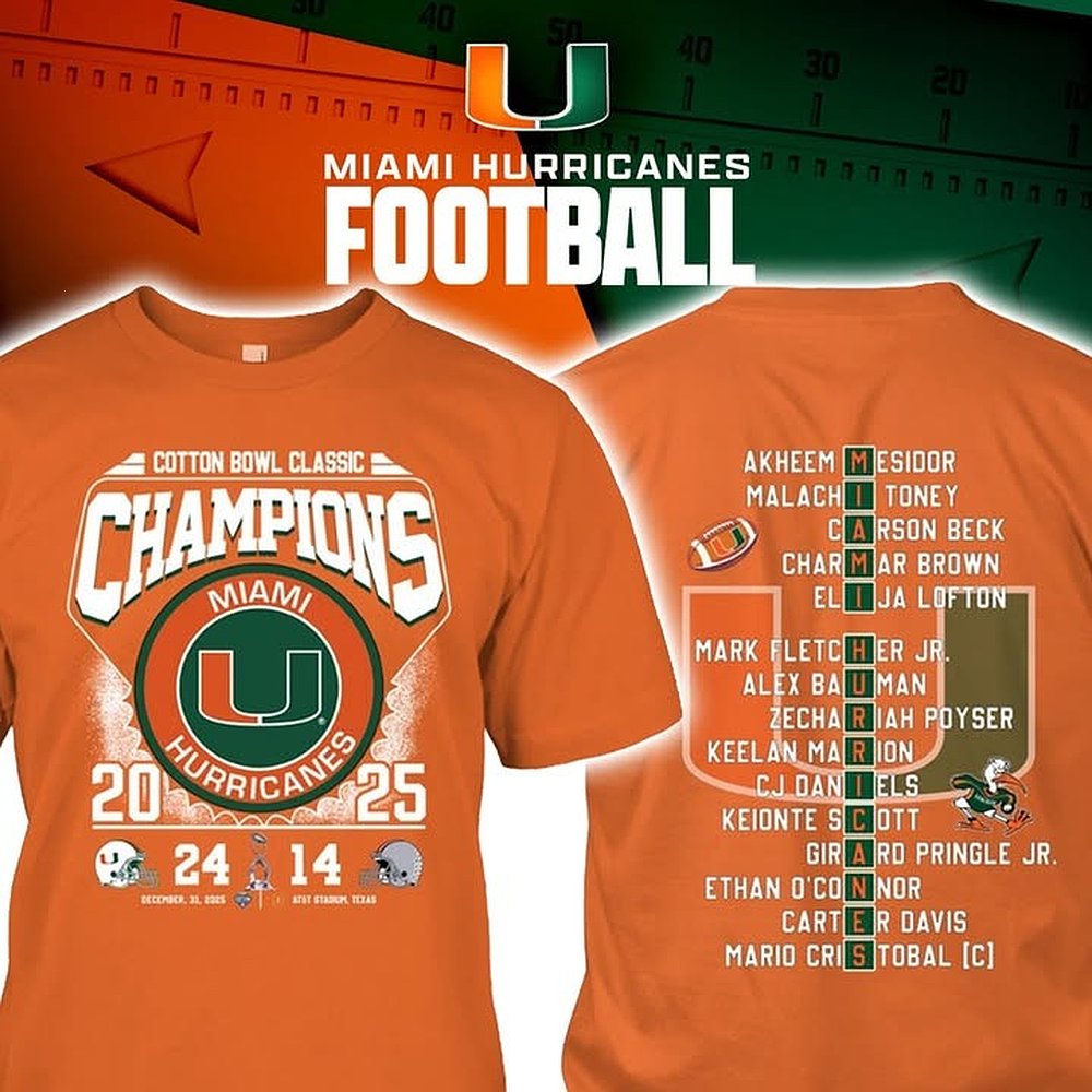 Miami Hurricanes Football Cotton Bowl Classic Champions 2025 T-Shirt Best Gift For Football Fans