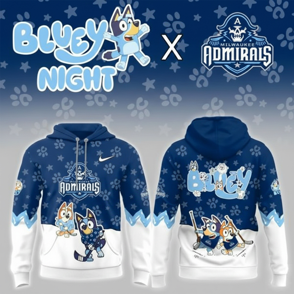 Milwaukee Admirals Bluey Night Game Hoodie Admirals Apparel Fun Gift For Family Hockey Fans.